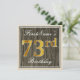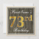 Este simples e bolsa mensageifesta de aniversario elegante de convite apresenta uma mensagem personalizada como "73º Aniversário do Primeiro Nome" (com o "73º" a ter um aspecto de cor falsa/imitação em forma de ouro) dentro de uma área quadrada de aparência de madeira rústica/imitação com um contorno de fronteira simples. O nome está em um texto elegante, de cor branca, semelhante a script, e pode ser personalizado. A parte traseira apresenta detalhes personalizados do convite. Um convite de aniversário como este poderia talvez ser usado ao convidar pessoas para uma festa de aniversário em prisão preventiva para alguém que comemora seus setenta e três anos. [~Z0000231]