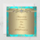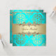 Modelo de convite de festa em damaque azul-turquesa e dourado. Adicione seus detalhes na frente e no verso deste convite de festa e evento elegante azul-turquesa e dourado simplesmente escolhendo o botão "Personalize!" para começar a adicionar os detalhes do seu evento, estilo de letra, tamanho e cor da letra e texto. Por favor, note que - todos os desenhos de convite que você encontrará no Zazzle são gráficos impressos em papel liso sem joias, laços, relevos, rebaixos ou peças ou partes adicionadas.