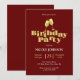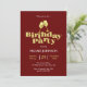 O convite de aniversário moderno apresenta champanhe dourado com texto de tipografia ousado "festa de aniversário" em fundo burgundy. Personalize os convites de festa de aniversário adicionando seu nome e detalhes da festa.