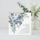 Linda cor d'água, flores azuis poeirentas, convite de aniversário floral sobre fundo branco nítido. Sacudir nosso convite de aniversário para ver uma cor azul de água coordenadora de volta para um toque especial