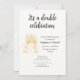 Honre seu marco com uma festa elegante usando este convite de aniversário conjunto em aquarela, perfeito para celebrações familiares ou formais. O design apresenta duas taças de champanhe num brinde, contra um fundo suave e destacado pela frase tocante "É uma dupla celebração". Com sua aparência leve e elegante e combinação de fontes, este convite atinge um equilíbrio entre profissional e pessoal. O verso inclui os mesmos elementos bonitos com espaço para detalhes adicionais da festa. Se você está planejando uma reunião formal ou relaxada, este convite ajuda a definir o tom.