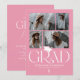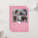 Celebre seu graduado com um estilo atemporal e sofisticado com este elegante convite de festa de formatura rosa e branco. Contra um fundo rosa charmoso, a tipografia moderna "GRAD" em serifa branca cria um ponto focal refinado, completo com um ícone de um chapéu de formatura estiloso posicionado acima do "R". A cauda fluída do "R" se transforma em uma borla elegante, unindo perfeitamente o nome do graduado, escola, faculdade ou universidade e ano de formatura para uma aparência coesa e luxuosa.