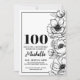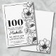 Apresentando um convite de aniversário chic e elegante 100º, perfeito para comemorar cem anos de estilo. O design apresenta um fundo branco limpo, criando um visual preto e branco clássico em geral. A deliciosa arte da linhagem de anêmonas corre pelo lado direito em preto, adicionando um toque de elegância. Enquanto estas são flores anêmonas, elas podem puxar um olhar floral bastante genérico. Um simples quadro preto ao redor da borda adiciona um detalhe extra ao design geral. As fontes são uma mistura de tipografia elegante, serifa ousada e estilos modernos simples, com um grande "100" exibido no topo, seguido dos detalhes da festa abaixo. No verso, a design continua com o mesmo fundo branco e um contorno de uma flor preta solteiro, acrescentando um toque sutil e sofisticado. Este convite é perfeito para uma celebração de centésimo aniversário. A cor de fundo, as fontes e até as flores podem ser personalizadas para corresponder ao seu estilo. Disponível como um convite impresso ou como um convite digital para download que você pode enviar por e-mail ou que foi impresso localmente!