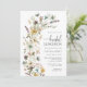 Convite para o Luncheon Floral Bridal Elegante. Este elegante convite para o almoço de flor silvestre, branca, apresenta uma bela cor d'água, cor pincelada manualmente, cor pincel, azul empoeirado, e sage flores verdes prensadas com texto de cinza escura sobre fundo branco. Localizar itens correspondentes na Coleção de Chás de panela Selvagens.