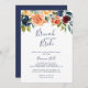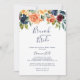 Este elegante brunch floral com o convite ao chá da noiva é perfeito para um chá de casamento moderno. A design apresenta buquês perfeitamente desenhados à mão de rosa, pincelado, amarelo, burgundy, vermelho, indigo e folhagem verde, inspirando beleza natural.