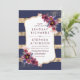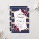 Convite para o casamento da Borgonha, marinho e ouro com as listras modernas e as flores de Marsala design. O convite perfeito para o Verão da noite ou o casamento outono tardio!