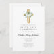 Elegante Elegante Floral Cross Girl Primeiro Convite Comunitário Sagrado.