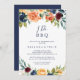 Este elegante convite de festa de noivado floral "Eu faço" é perfeito para uma festa de noivado moderna, janto de ensaio, chá de casais, após festa ou qualquer evento de casamento. A design apresenta buquês perfeitamente desenhados à mão de rosa, pincelado, amarelo, burgundy, vermelho, indigo e folhagem verde, inspirando beleza natural.