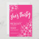 Elegante Floral Trinta Quente, Convite de festas Rosa Quente. Um divertido, mas elegante, 50º convite de aniversário com flores rosa e brancas brilhantes para os jovens de coração. Um padrão de flor brincalhão enquadra uma tipografia de script "ela tem trinta anos" misturada com uma fonte mais clássica de serifa. Celebrar trinta anos de vida com esta bela design botânica. A parte divertida é que você pode mudar TODAS as cores! Você não só pode mudar as cores e a fonte de fundo, como também pode mudar as linhas das flores. Disponível como um convite impresso ou como um convite digital para download que você pode enviar por e-mail ou que foi impresso localmente!