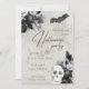 Planeje uma elegante e chic Festa de Halloween com este convite de festas esquisito. Pintou manualmente flores brancas e pretas com um crânio de aquarela. Personalize o modelo de texto com os detalhes do seu partido.