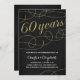 Este convite de festas, na moda 60º aniversário de casamento, apresenta elogios elegantes de vintage, uma caligrafia que diz "60 anos", uma folha de ouro falsa, e um fundo preto chic.