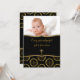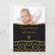 Convites Elegante Foto de Bebê Preto e Dourado Batismo