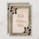 Bonita, elegante e sofisticada convidada para a festa de aniversário 45 para mulheres e raparigas. Design de canto, rosas rosas rosas, românticas, bonito e decorativas, com folhas e fitas de rendas, com uma bela moldura de ouro/cinza, com joias de pedra na moda, rocha-borda, todas impressas sobre um fundo bonito, cor-de-rosa/creme. O reverso desta bela placa giratória tem o mesmo design com espaço suficiente para você personalizar com seus detalhes de evento. Uma maravilhosa design feminina para aniversários. Todo o texto é totalmente personalizável para atender às suas necessidades, se você quiser ajuda para personalizar seu produto, entre em contato comigo na minha loja e eu terei todo o prazer em ajudá-lo.