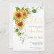 Crie um cartão moderno de Chá de panela de Script Floral de Girassol com este modelo giro com um belo buquê floral rústico com uma tipografia simples moderna.