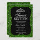 Convites Elegante Glitter Verde Chic Tiara Sweet 16