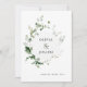 Estes convites de casamento simples e elegantes apresentam folhas de aquarela em tons de verde sábio e verde escuro, em um fundo branco limpo. Seus nomes aparecem em um quadro botânico na frente com uma amperse coberta de verde, e mais folhagem decora as costas juntamente com seus detalhes de casamento em um roteiro manuscrito moderno. Uma design adorável que ajustado qualquer estilo de casamento de rustic a boho para minimalista.