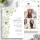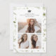 Convite para Festas de formatura Elegante Greenery. Convide os entes queridos a celebrarem a sua conquista com este convite para festas de formatura na moda para mais velho segundos graus e formandos universitários. Apresentando um nítido fundo branco e um texto de cinza de luz suave, este design refinado é acentuado com botânicos suaves e elegantes em tons de sábio, caçador e verde florestal com samambaias chic e na moda e florais brancos delicados, todos pintados à mão em bela aquarela. Seja hospedando uma animada reunião de verão, uma festa de outono aconchegante, ou uma sofisticada celebração de inverno, este convite é perfeito para qualquer estação. A parte de trás apresenta um padrão de coordenação e uma bela colagem de três fotos, permitindo que você exiba memórias especiais de forma significativa. Elegante e pessoal, este convite dá o tom perfeito para uma celebração memorável.