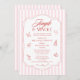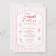 A Elegante Jingle & Mingle Corporate Christmas Party Holiday Party Invtions apresenta simples elementos brancos vermelhos de Natal num fundo listrado cor-de-rosa e branco com o texto "Jingle & Mingle" na elegante tipografia do script de caligrafia vermelha. Na moda, tendências e chic para a sua festa de Natal corporativa. Criado pelo Evco Studio www.zazzle.com/store/evcostudio