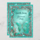 Convide seus amigos e família para comemorar seu aniversário de 15 com este elegante e sofisticado produto de convite. O design apresenta um fundo verde-turquesa com diamantes espumantes e borboletas, criando uma aparência elegante e de moda. Você pode personalizá-lo com suas informações, como seu nome, data, hora e local da sua parte. Este produto de convite é perfeito para uma Quinceanera ou uma doce festa 16, pois mostra seu estilo e elegância. Peça o seu hoje e prepare-se para ter uma comemoração de aniversário memorável e divertida!