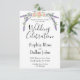 Um design elegante e vintage com rosas cor-de-rosa, eucalipto e lavanda pintados em românticos Convites de Casamento com Cor de Água.