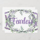 Uma design romântica e elegante com a palavra "destemido", enquadrada por eucalipto e lavanda pintada em aquarela.