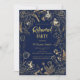 Convites Elegante Linha de Arte Floral Azul Naval Dourado A