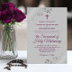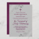 Este belo convite para o casamento é perfeito para uma cerimônia católica moderna. Ele apresenta um belo design com magenta elegante, roxo de chassis ou letra de escrita colorida de morango e ornamentado de coalhada de cinza prateada e espirais nos cantos de um fundo de cinza. Inclui uma cruz ou crucifixo, e uma formulação convidando seus convidados a assistir a uma massa nupcial unindo o casal no sacramento do matrimônio sagrado. Este convite é a combinação perfeita de tradição formal e estilo moderno, fazer uma maneira maravilhosa de convidar seus amigos e família a compartilhar sua alegria no seu dia especial.