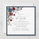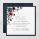 Chá de panela quadrado moderno e elegante por convite por correio com um buquê de flores azuis e burgundy marinhos, bordado em azul marinho. Personalize os detalhes do seu chá de panela em preto suave, acentuado com uma bela caligrafia manual moderna. Parte de uma suíte correspondente. Consulte a coleção de cheios aqui: https://www.zazzle.com/collections/elegant_navy_blue_burgundy_botanical_bridal_shower-119592964187643986 Copyright Elegant Invites, todos os direitos reservados.