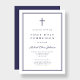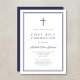 Elegante Marinho Blue Cross Boy Primeiro Convite Comunitário Sagrado.