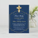 Celebre a Primeira Comunhão do seu filho com amigos e familiares convidando-os com este elegante e falso cartão de convite da Primeira Comunhão. Este design apresenta uma bela cruz de ouro com um quadro de ouro contra um simples fundo azul de marinho. Personalize o texto e a fonte ao seu gosto. Outras fontes e estilos disponíveis. Por favor, entre em contato conosco com seu pedido especial e ficaremos felizes em ajudá-lo.