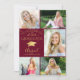 Marrom elegante ou burgundy e convite de festa de formatura de ouro (ou outra cor de fundo) com uma colagem fotográfica de 5 fotos na frente, um falso boné de formatura metálico de folha de ouro ou placa-mãe, minúsculo confetti de estrela de ouro, um elegante FORMANDO de tipografia caligráfica com título 20XX e um roteiro moderno, manuscrito, para o nome do formando. A cor de fundo editável pode ser alterada para uma cor de escola, cor favorita ou uma cor que coordene suas fotos. ASSISTÊNCIA: para obter ajuda com a modificação ou personalização do design, alteração de cor, transferência do design para outro produto ou você gostaria de coordenar itens, entre em contato com o designer ANTES DE ENCOMENDAR através da guia MENSAGEM de bate-papo Zazzle ou envie um email para makeitaboutyoustore@gmail.com.