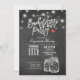 Modelos de Cartão de Convite para Celebração de Casamento/chá de panela - Letras Elegantes de Letra de Festa de solteira e Luzes de String de Jar Vintage Mason com Fundo de Quadro Preto Grunge. Um Design perfeito para o seu grande dia. Todo estilo de texto, cores, tamanhos podem ser modificados para ajustado das suas necessidades!