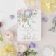 Um chá de panela delicadamente bonito, que apresenta um arranjo em cascata de flores e folhas de aquarelas pastéis em massa, rosa e verde sobre fundo branco. "chá de panela" está na letra mauve do estilo caligrafia moderno. Personalize com detalhes do evento em cinzas escuras e fontes de luz mauve. O reverso está em massa sólida.