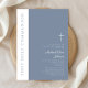 Convites Elegante Modern Dusty Blue Cross Primeira Comunhão