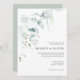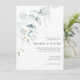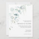 Convite De Casamento | Simples e chic, um delicado ramo de verde-eucalipto verde-empoeirado em cascata do lado esquerdo com o texto do casamento alinhado à direita - um apelo elegante rústico. Esta é parte de uma coleção de artigos de papelaria de casamento com acessórios de casamento. WhimsicalArtwork criada para o BarefootBride™