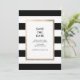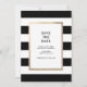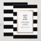 Este elegante, ousado e moderno cartão de Save the Date de casamento listrado preto e branco é extremamente moderno. Com uma sobreposição branca bordeada com folha de ouro rosa falsa, o texto é escrito em uma fonte sem serifa atemporal e elegante. O verso do cartão apresenta as mesmas listras horizontais pretas e brancas ousadas que são apresentadas na frente. O convite perfeito para a noiva exigente, e parte de um Conjunto de Convites.