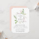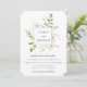 Elegante moldura botânica quadrada de flores silvestres, convite de casamento. Folhas e ramos botânicos verdes delicados e arejados com flores silvestres suaves roxas e rosadas. O verso do cartão apresenta cor rosa pétala sólida.