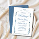 o design da frente mostra um convite de casamento escrito na caligrafia clássica e na tipografia cor azul de sábio. este elegante convite floral clássico será perfeito para o seu dia especial.