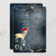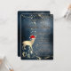 Um convite elegante para festas de férias, com um veado preto de Natal com chapéu de Santa, em fundo azul. Estes belos convites de Natal são perfeitos para convites de festas de janto de Natal, convites para troca de presentes de Natal, angariadores de fundos de Natal, convites para bolas de férias e outros eventos realizados durante o mês de dezembro. Use apenas os campos modelo para adicionar suas próprias informações de evento.