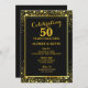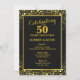 Convites Elegante negro e Dourado 50º aniversário de casame