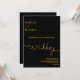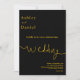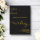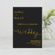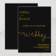Este convite de casamento preto e dourado é perfeito para um casamento moderno. O design simples apresenta caligrafia dourada elegante em um fundo preto.