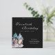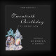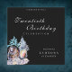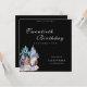 Um belo e elegante convite de aniversário para adultos em preto e branco com conchas e corais pintados à mão numa praia arenosa. Personalizável para qualquer marco de aniversário