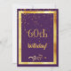 Um cartão de convite de aniversário 60º e elegante. Uma cor de fundo púrpura escura e feminina e uma imagem falsa de ouro. Com o ouro confetti. Na frente do texto: 60º aniversário! e decoração floral falsa de ouro. Traseira: Modelos para informações de sua festa, cartas de ouro.