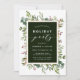 Este Natal | Elementos do convite de férias pintados de aquarela eucalipto, folhas verdes, bagas vermelhas, ramos de pínus e um quadro de retângulo dourado falso com na moda caligrafia. Para personalização mais avançada deste design, clique no link "Personalizar mais". Itens correspondentes também estão disponíveis.
