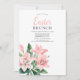 Um convite para o brunch da Páscoa floral elegante. O design apresenta lindos lírios rosa e verde, pincelados e com cor d'água. Use as ferramentas de design para personalizar o texto e as fontes. Também disponível como download digital.