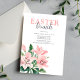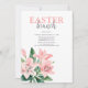 Um convite para o brunch da Páscoa floral elegante. O design apresenta lindos lírios rosa e verde, pincelados e com cor d'água. Use as ferramentas de design para personalizar o texto e as fontes. Também disponível como download digital.