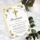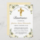 Celebre el bautismo de su hijo o hija con amigos y familiares convidito con esta elegante invitación de bautizo de oro y Amarillo. Este diseño apresenta uma una hermosa cruz con un marco floral sobre un fondo blanco simples. Personaliza a texto da texto da foente a tu gusto. Otras fuentes y estilos. Contáctanos con tu solicitação especial y estaremos encantados de ayudarte.