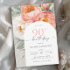 Convites Elegante Peach Floral Feminina 90 Aniversário
