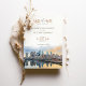 Anuncie seu próximo casamento com este sofisticado convite da "Salve-a-Data" com a estonteante linha do horizonte de Filadélfia, Pensilvânia. O cartão mostra uma bela ilustração aquosa da paisagem icônica citística de Filadélfia, refletindo o seu encanto histórico e a sua vibração moderna. O texto é apresentado elegantemente numa mistura de fontes clássicas de serifa e guião, usando cores como ouro mudado, verde-oliva e terra quente. Perfeito para casais planejando um casamento urbano contemporâneo, este convite captura a essência da atmosfera única de Filadélfia com elegância artística.
