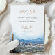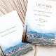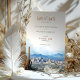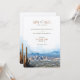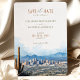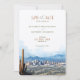 Anuncie o seu próximo casamento com este convite da "Salve-a-Data" na moda com o espetacular horizonte de Phoenix, Arizona. O cartão mostra uma bela ilustração aquosa da paisagem vibrante da cidade de Phoenix, colocada contra o pano de fundo das montanhas majestosas e da flora do deserto. O texto é apresentado elegantemente numa mistura de fontes clássicas de serifa e guião, com cores como ouro mudado, verde-oliva e terra quente, acrescentando um toque de sofisticação moderna. Perfeito para casais planejando um casamento urbano contemporâneo, este convite captura a essência do encanto único de Phoenix com elegância artística.